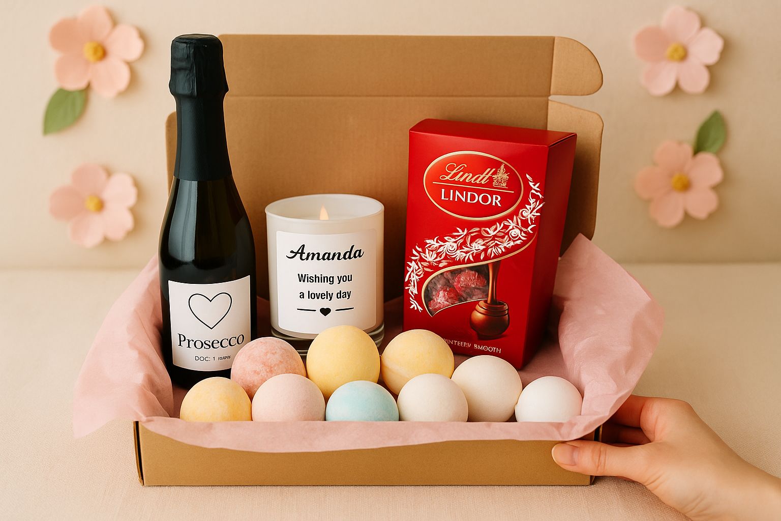 - Premium treats: Lindt chocolates, prosecco, teas, and pamper products.